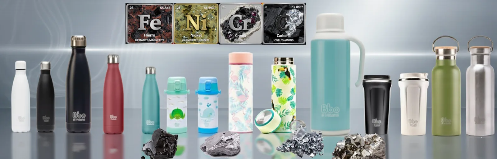 Los aceros inoxidables se clasifican en cinco grandes familias según su estructura y composición. Las más comunes en utensilios y botellas son:
